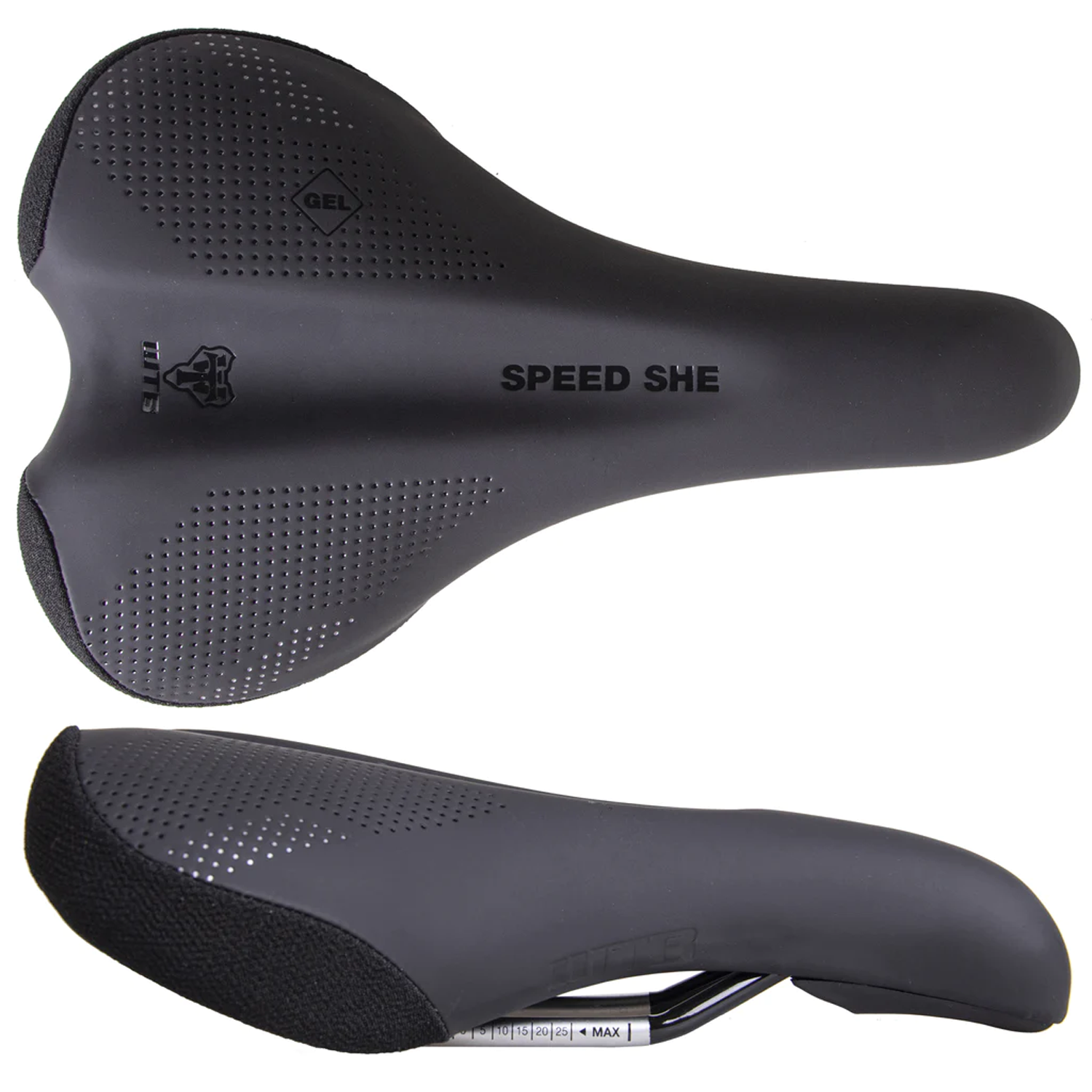 Este sillín enfocado a la mujer se ha convertido en uno de nuestros modelos más populares con su forma ergonómica, curvas suaves y costuras de perfil bajo. Su ancho medio y su perfil redondeado y abatible hacen del Speed ​​She un sillín fácil de manejar y maniobrar.