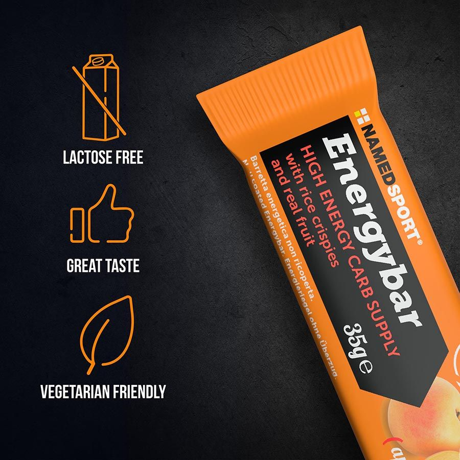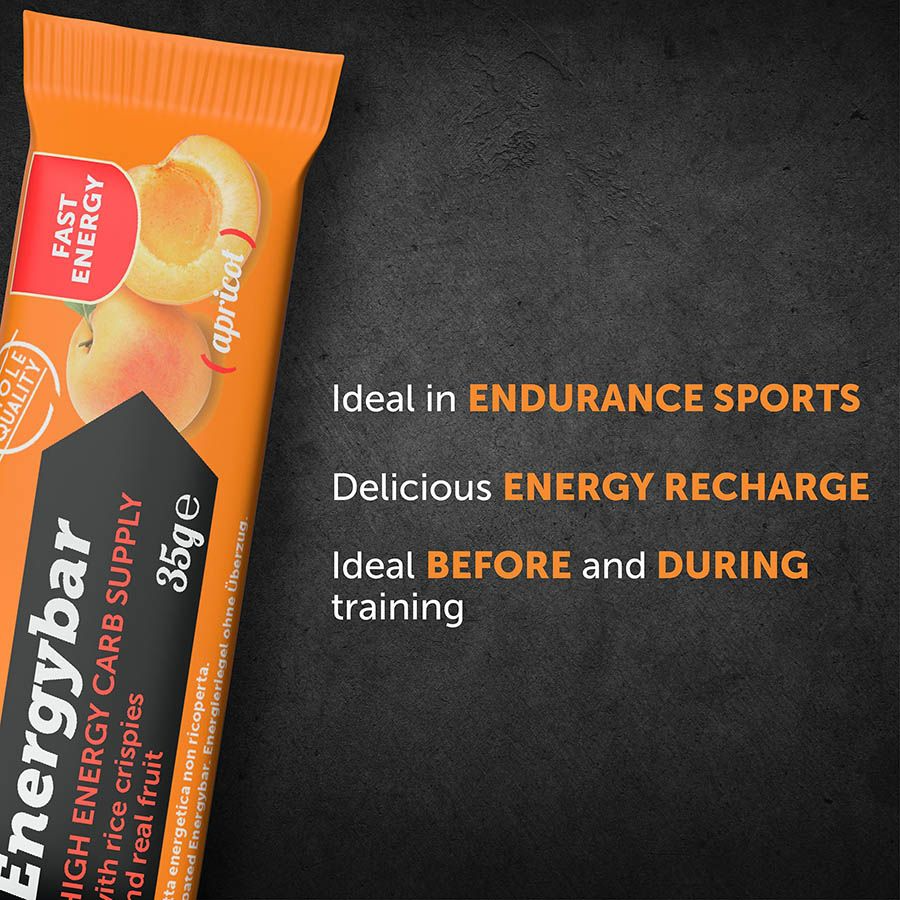 Energybar, mix de hidratos de carbono con arroz inflado y fruta real. 30 g de hidratos por barrita. Barrita específica para la reposición de energía rápida durante el ejercicio, con arroz inflado y puré de frutas.