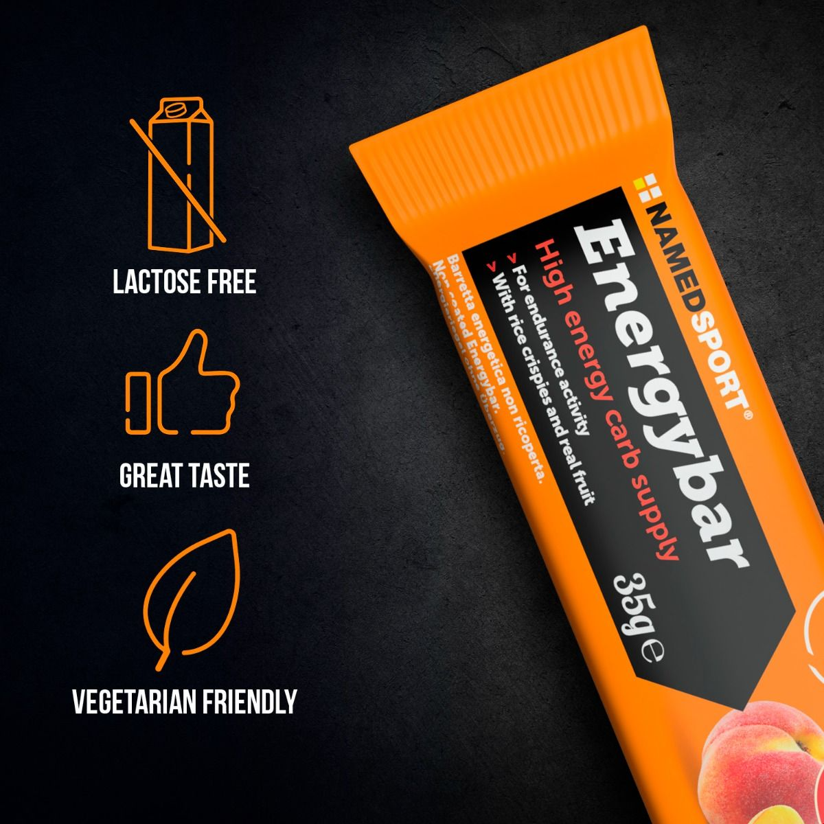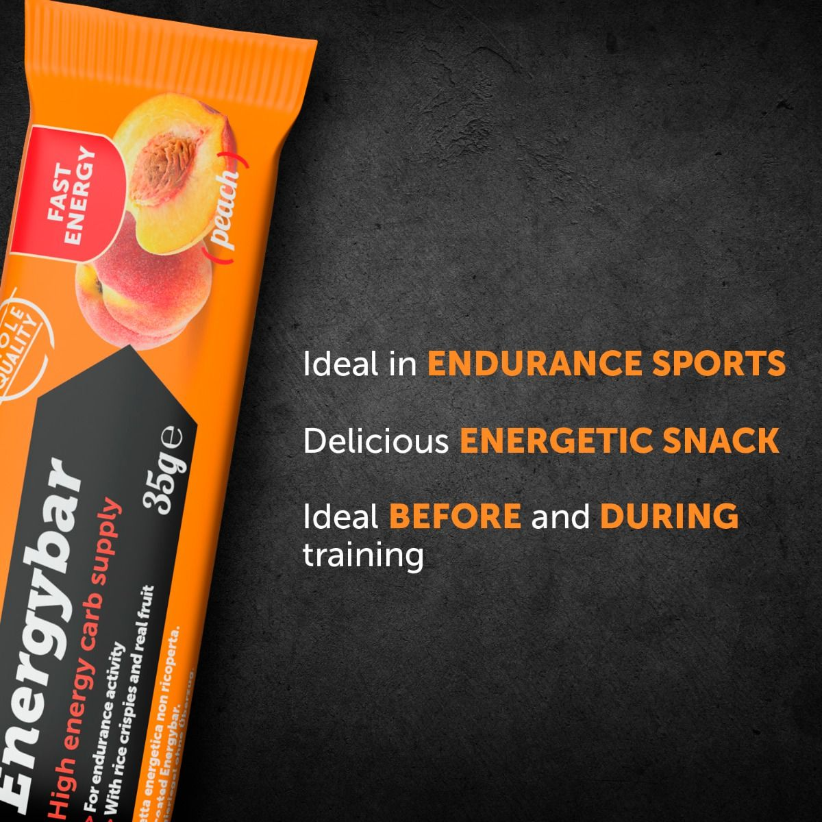 Energybar, mix de hidratos de carbono con arroz inflado y fruta real. 30 g de hidratos por barrita. Barrita específica para la reposición de energía rápida durante el ejercicio, con arroz inflado y puré de frutas.