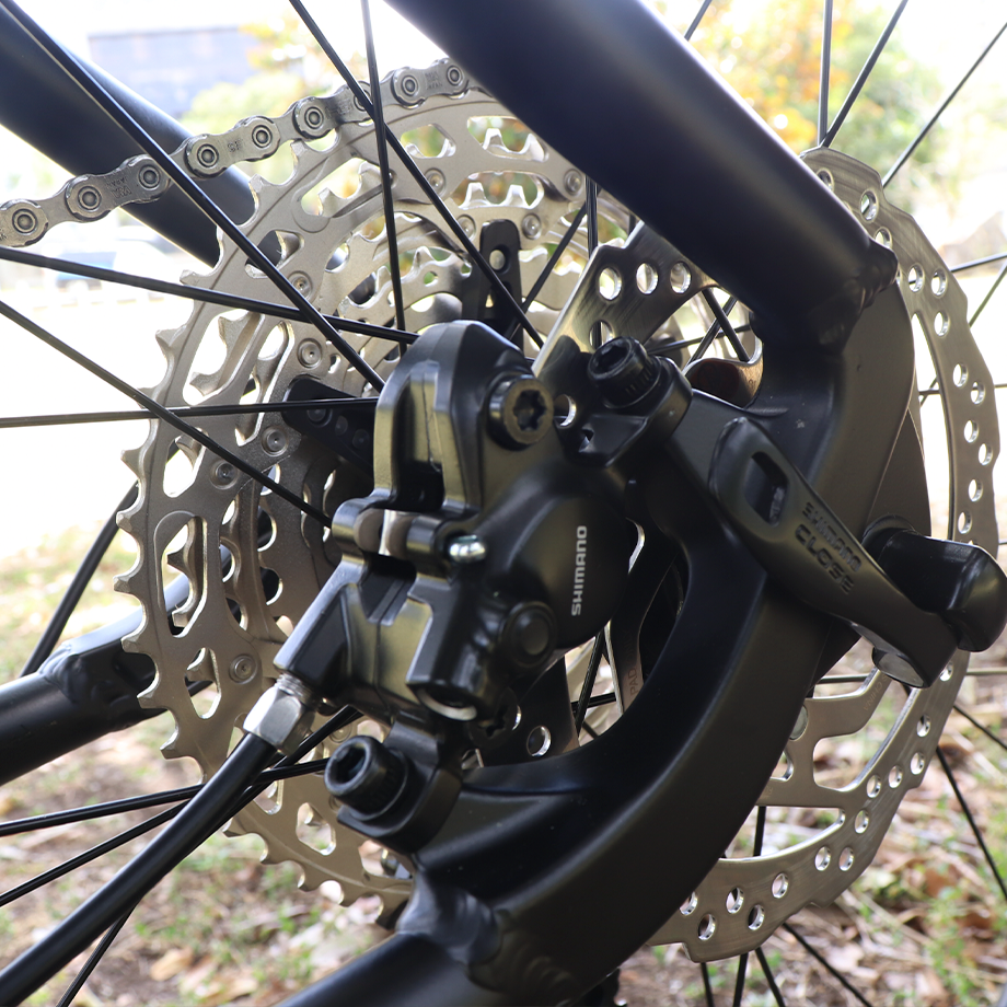 Equipada con Frenos Hidráulicos, horquilla con bloqueo y componentes Shimano, esta máquina te llevará a nuevas alturas.