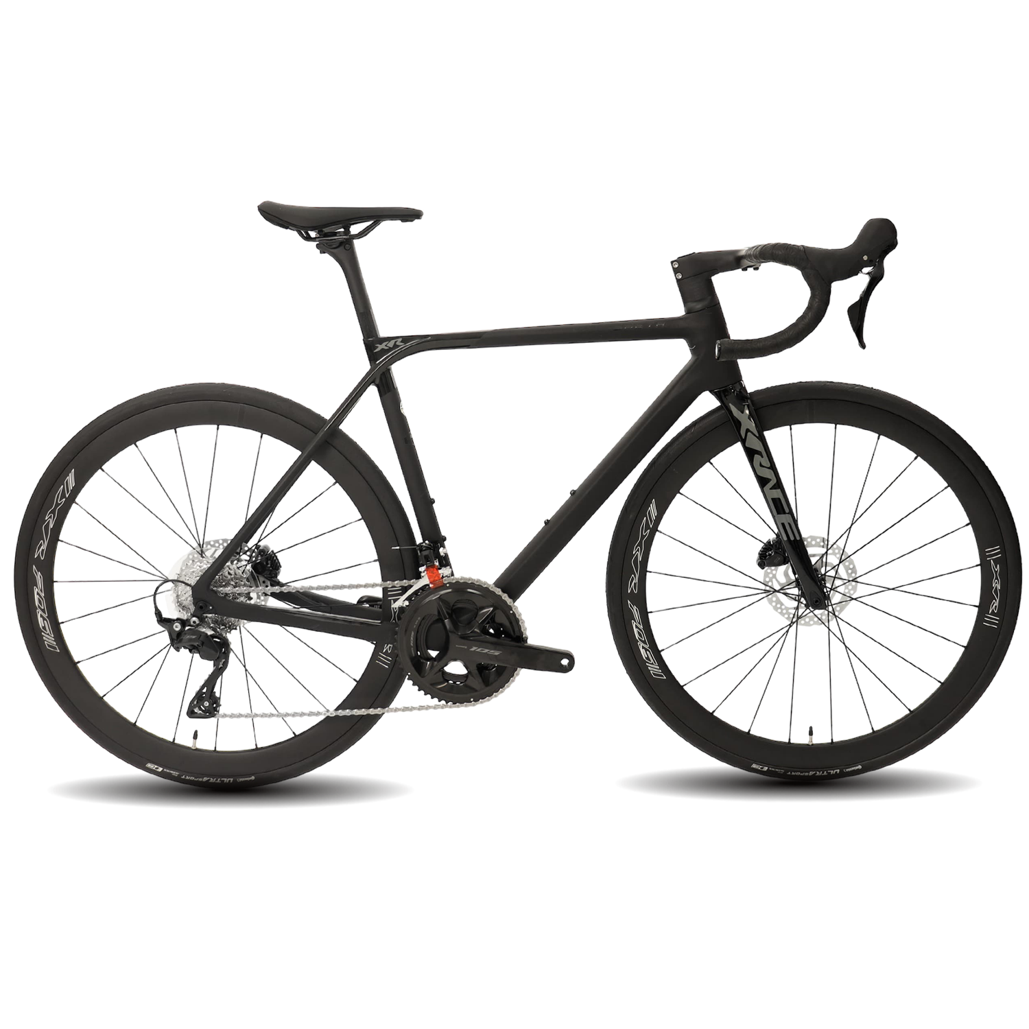 ¡Deslízate por el asfalto con estilo y velocidad en la bicicleta de carbono X-Race modelo Saeta! Diseñada para los ciclistas más exigentes, esta máquina de alta gama combina la ligereza y la resistencia del carbono con la precisión y el rendimiento de los componentes Shimano 105 R7100 de 12 velocidades.