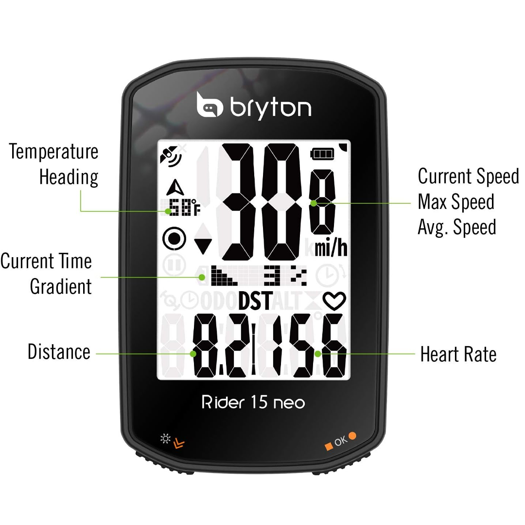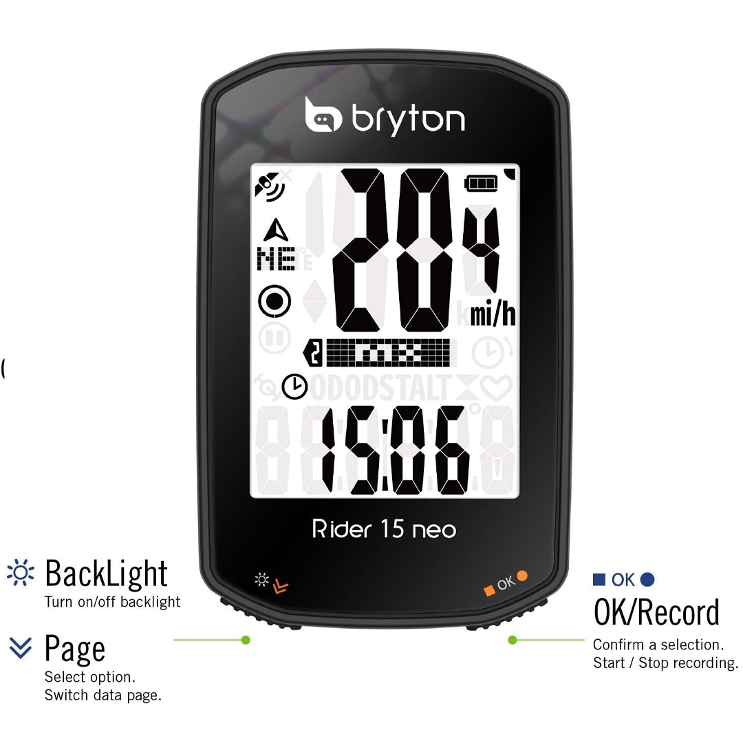 Alimentado por GPS para velocidad y configuración, el Rider 15 neo no requiere configuración de sensor ni configuración de perfil para su uso por primera vez. Simplemente monte el dispositivo en el manillar, enciéndalo y ¡listo!