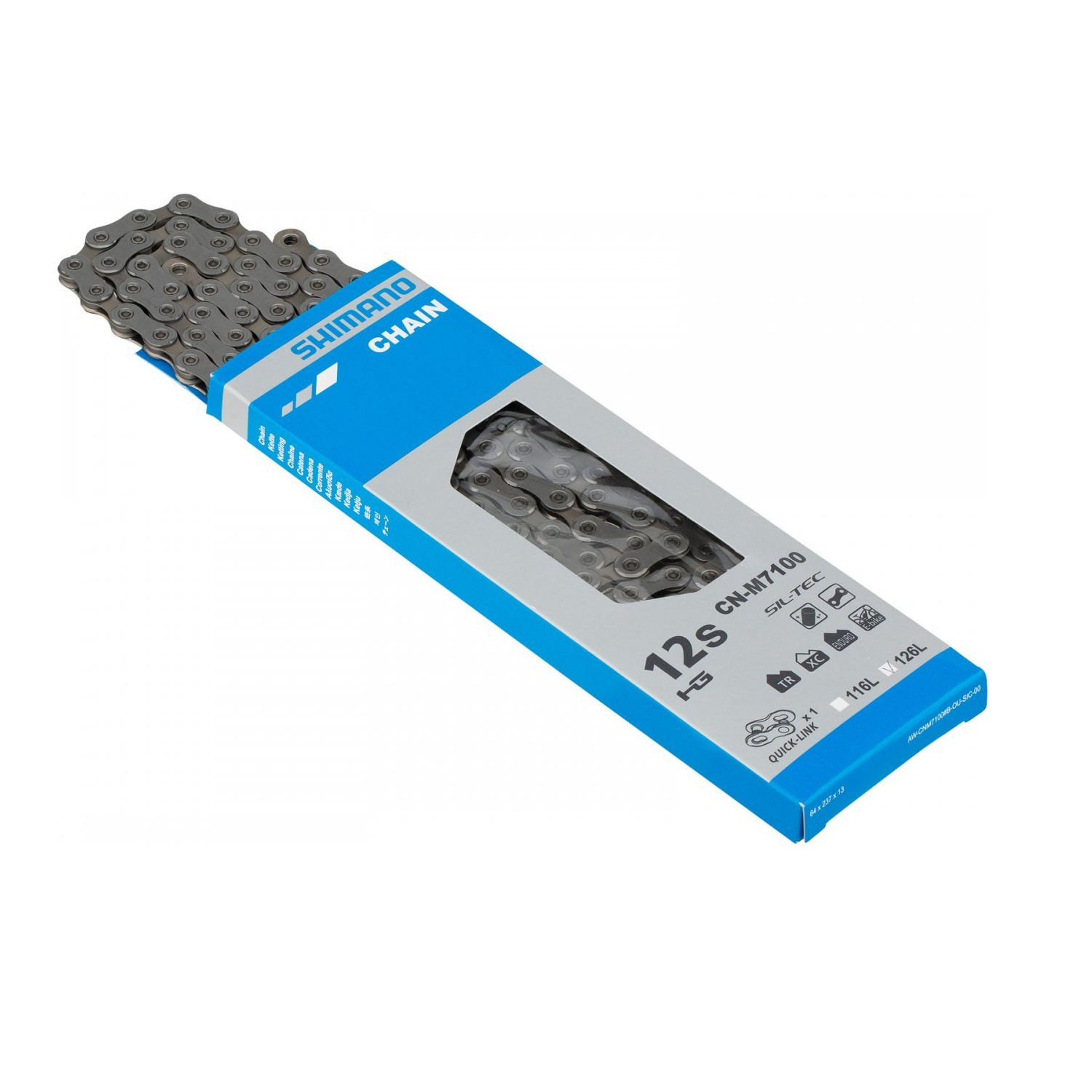 Las cadenas Shimano Hyperglide (HG) de 12 velocidades tienen platos interiores agrandados diseñados para funcionar con cassettes Hyperglide+ y platos Dynamic Chain Engagement+. Esto evita las vibraciones cuando el plato y la cadena entran en contacto, lo que mejora la retención de la cadena. En combinación con un cassette HG+ de 12 velocidades, se incrementa la eficiencia del cambio y de la transmisión. Esto también beneficia la vida útil de la cadena. Las cadenas HG de 12 velocidades son direccionales, es decir, tienen un diseño asimétrico y, por consiguiente, una dirección de montaje predefinida.