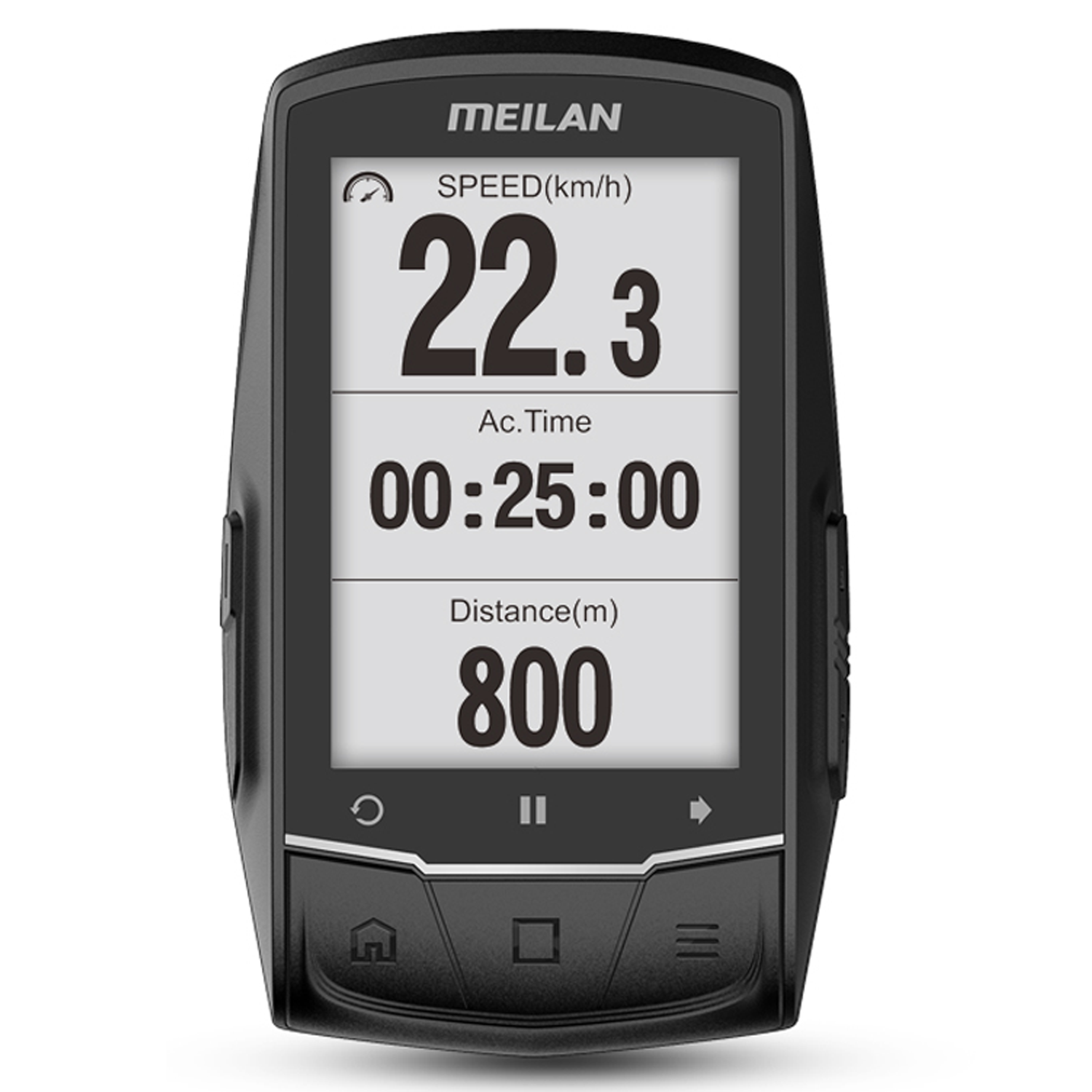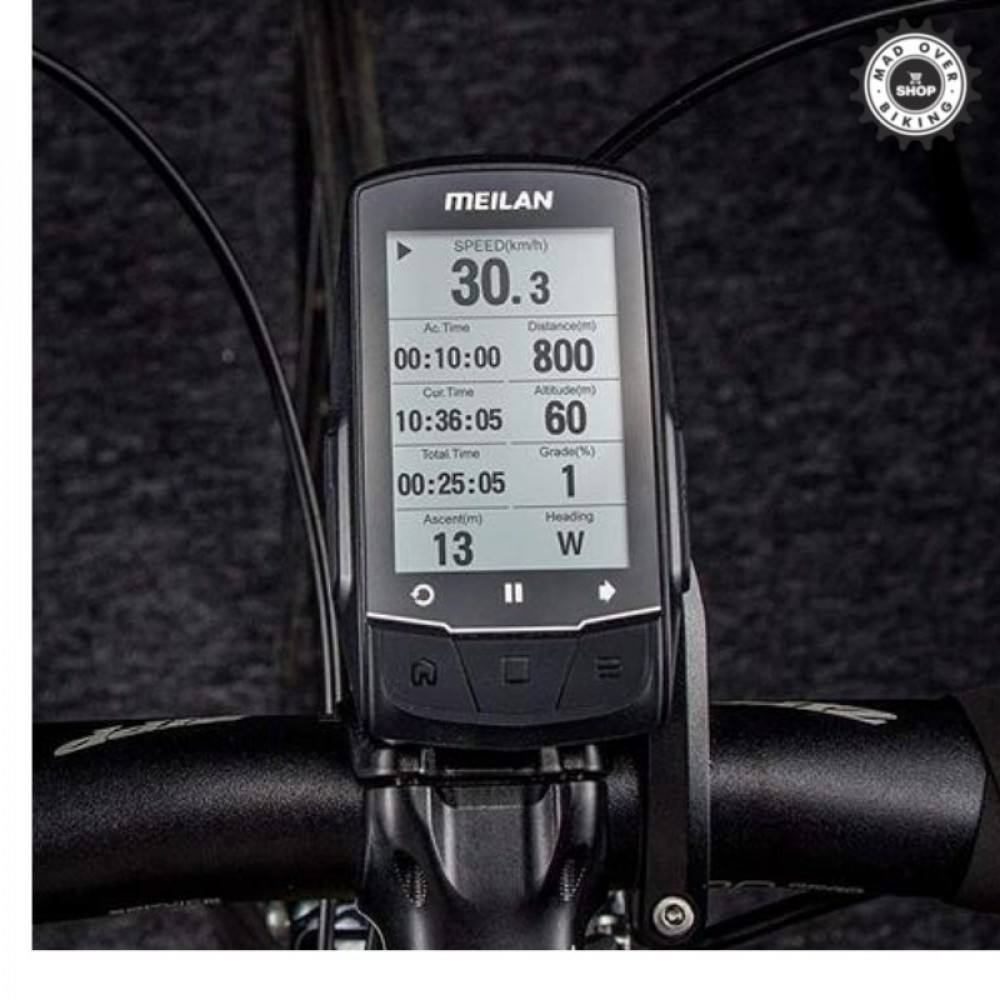 El ciclocomputador para bicicleta GPS M1 utiliza el GPS para un seguimiento preciso de la velocidad, el recorrido, la distancia y la altitud. También se puede conectar a entrenadores y accesorios ANT+ Indoor