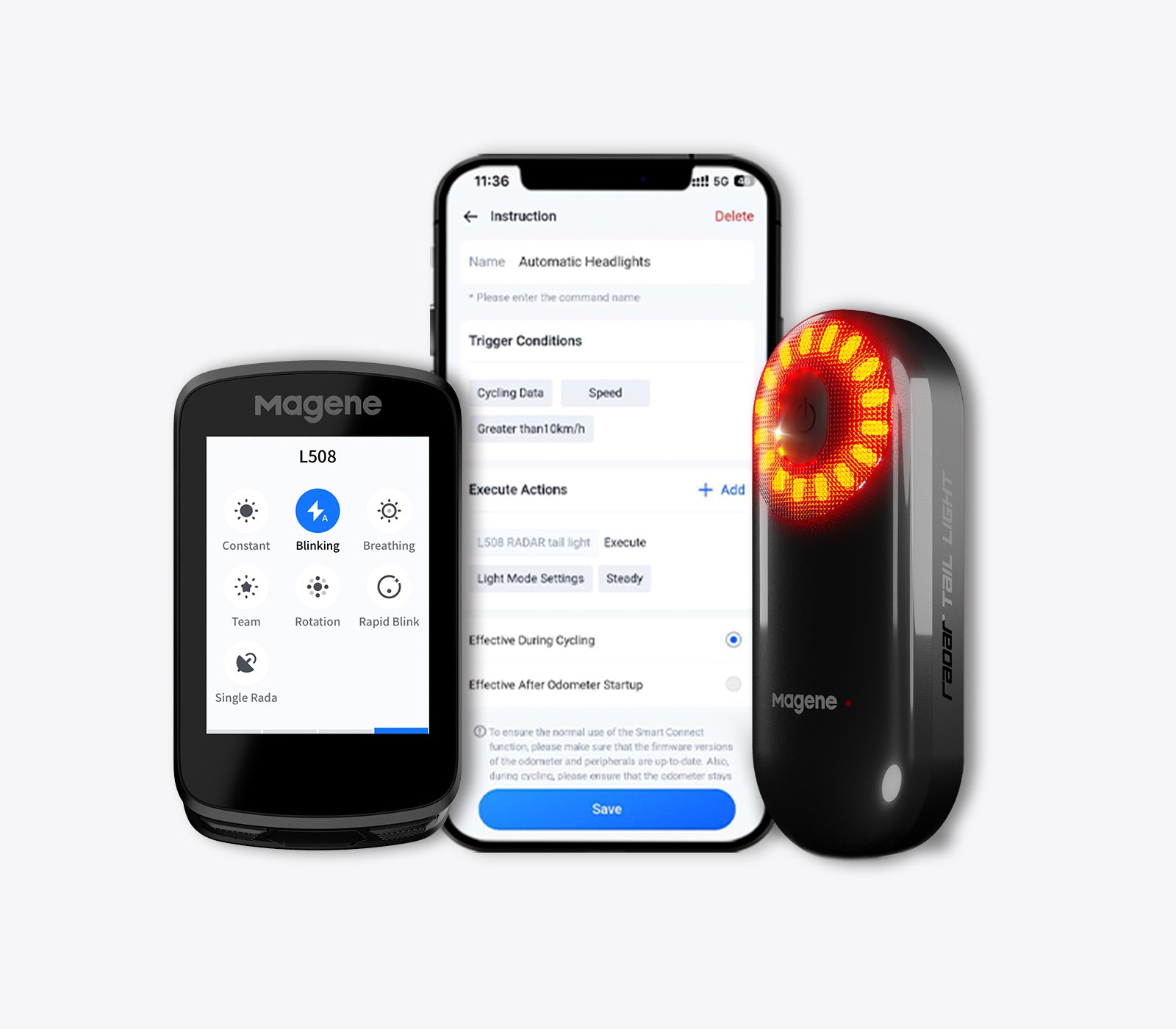 Conexiones inteligentes: El ordenador de bicicleta inteligente C606 permite configurar la luz trasera radar L508 y la luz trasera de expresión inteligente L308, liberándolo de la necesidad del teléfono móvil. Facilita interacciones inteligentes entre dispositivos basadas en condiciones de conducción.