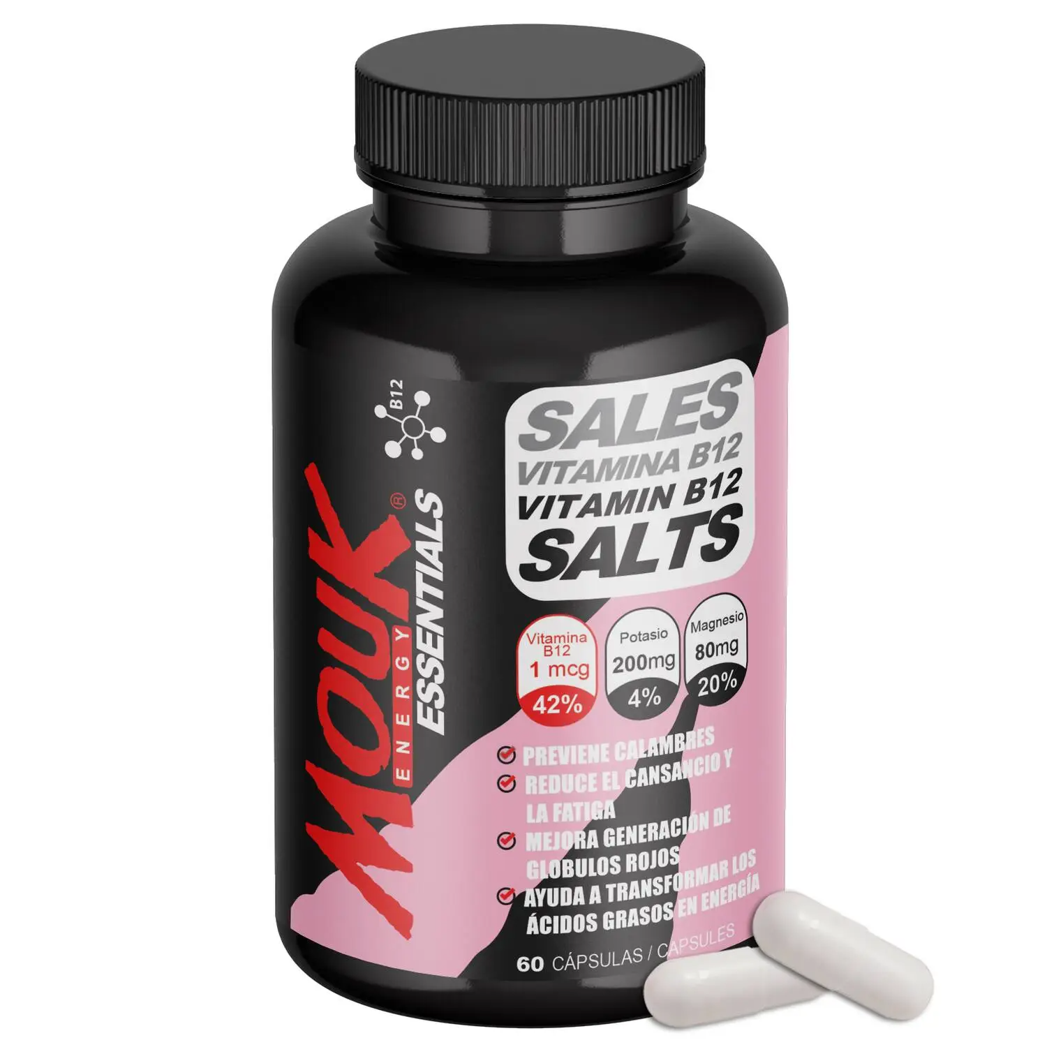 Las MouK ESSENTIALS B12 se diferencian en su vehículo de absorción en el cuerpo. Este mecanismo permite una rápida absorción incluso cuando el esfuerzo físico del atleta es alto y ayuda a eliminar calambres musculares.