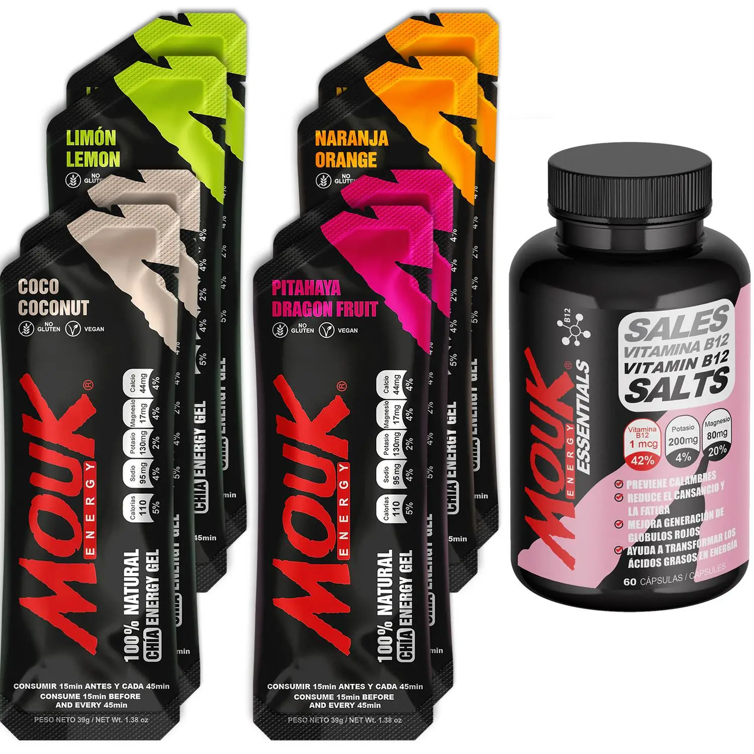 MOUK ESSENTIALS B12 se encarga de mantener los niveles adecuados de Potasio (K), Magnesio (Mg) y Vitamina B12 durante los entrenamientos, competencias e inclusive en el día a día.