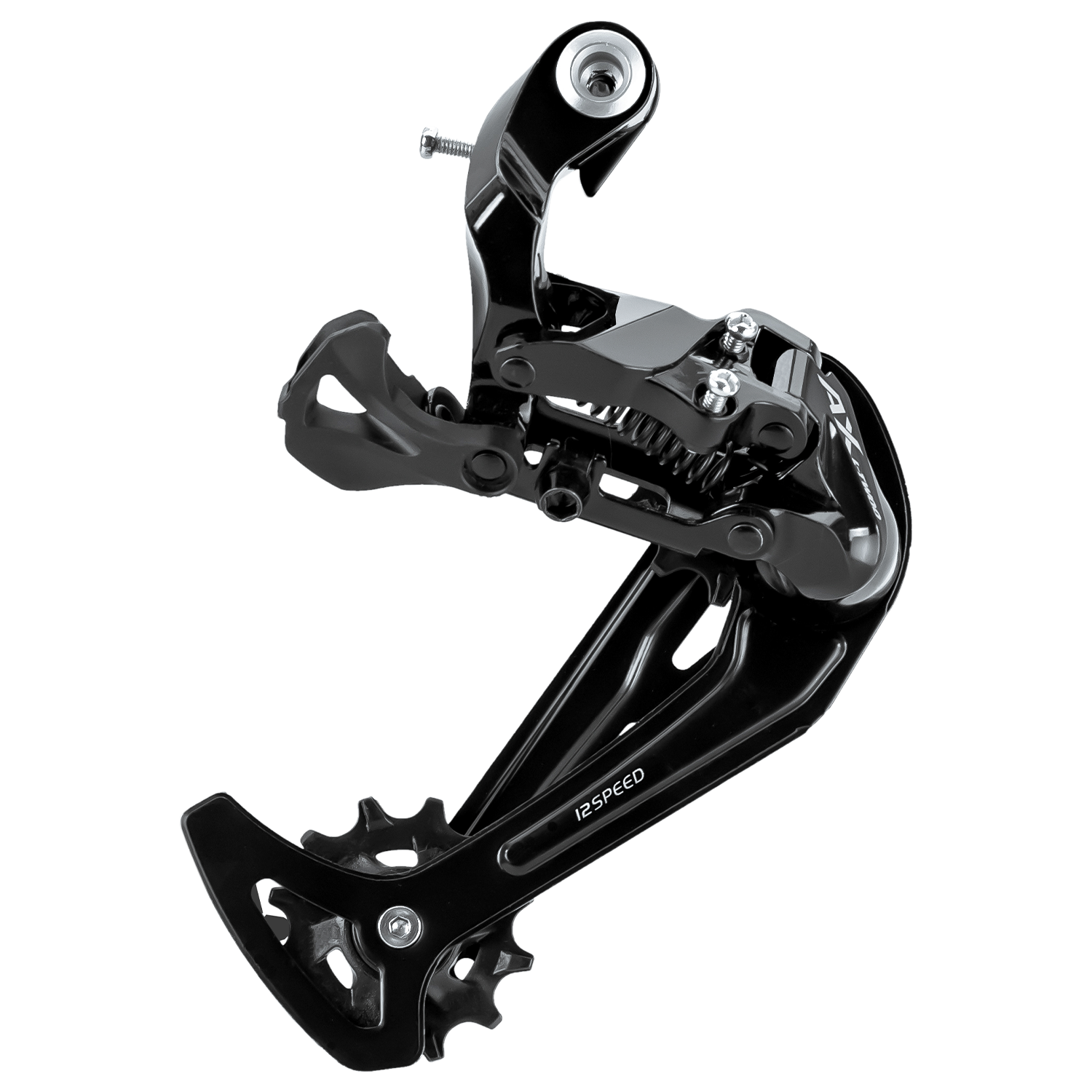 El pasador AX de 12 velocidades está diseñado para una transmisión de 1×12 velocidades. Un cuerpo de aluminio con una jaula de acero brinda durabilidad en un paquete liviano y los tornillos de límite H/L y B brindan una gran capacidad de ajuste. Una jaula larga permite un casete de hasta 52 dientes y solo es de montaje estándar M10x1.