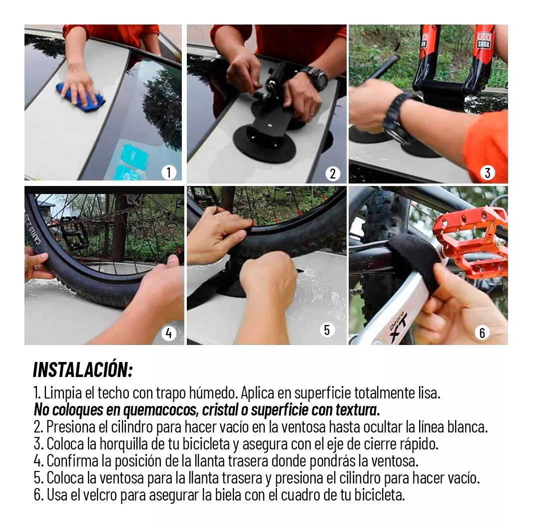 • Soporte de aluminio con 4 ventosas para colocar 2 bicicletas.