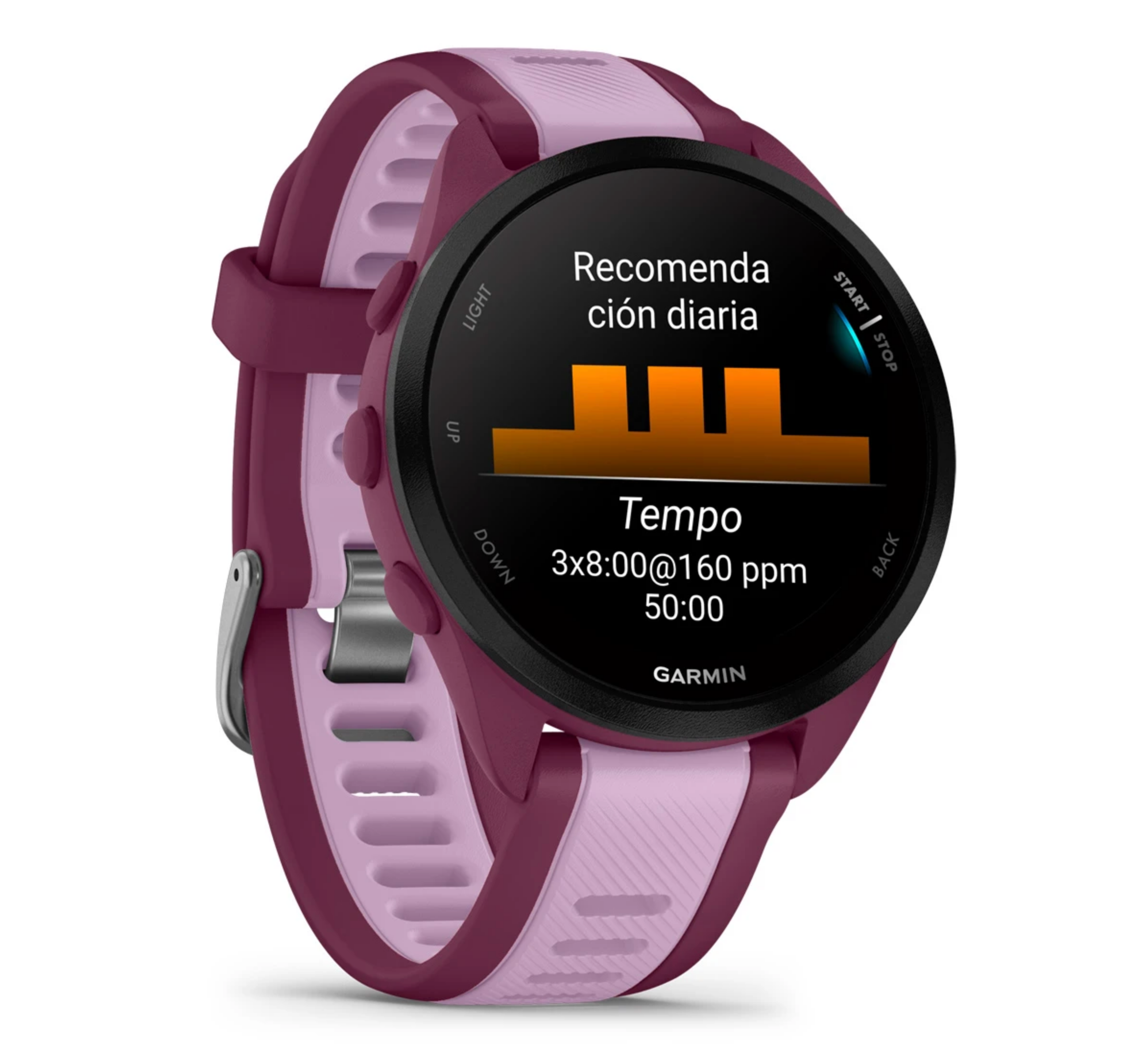 Controla tu rendimiento y lleva tu entrenamiento al siguiente nivel con el Garmin Forerunner® 165 Music, el reloj inteligente con GPS que te acompaña en cada paso de tu recorrido.