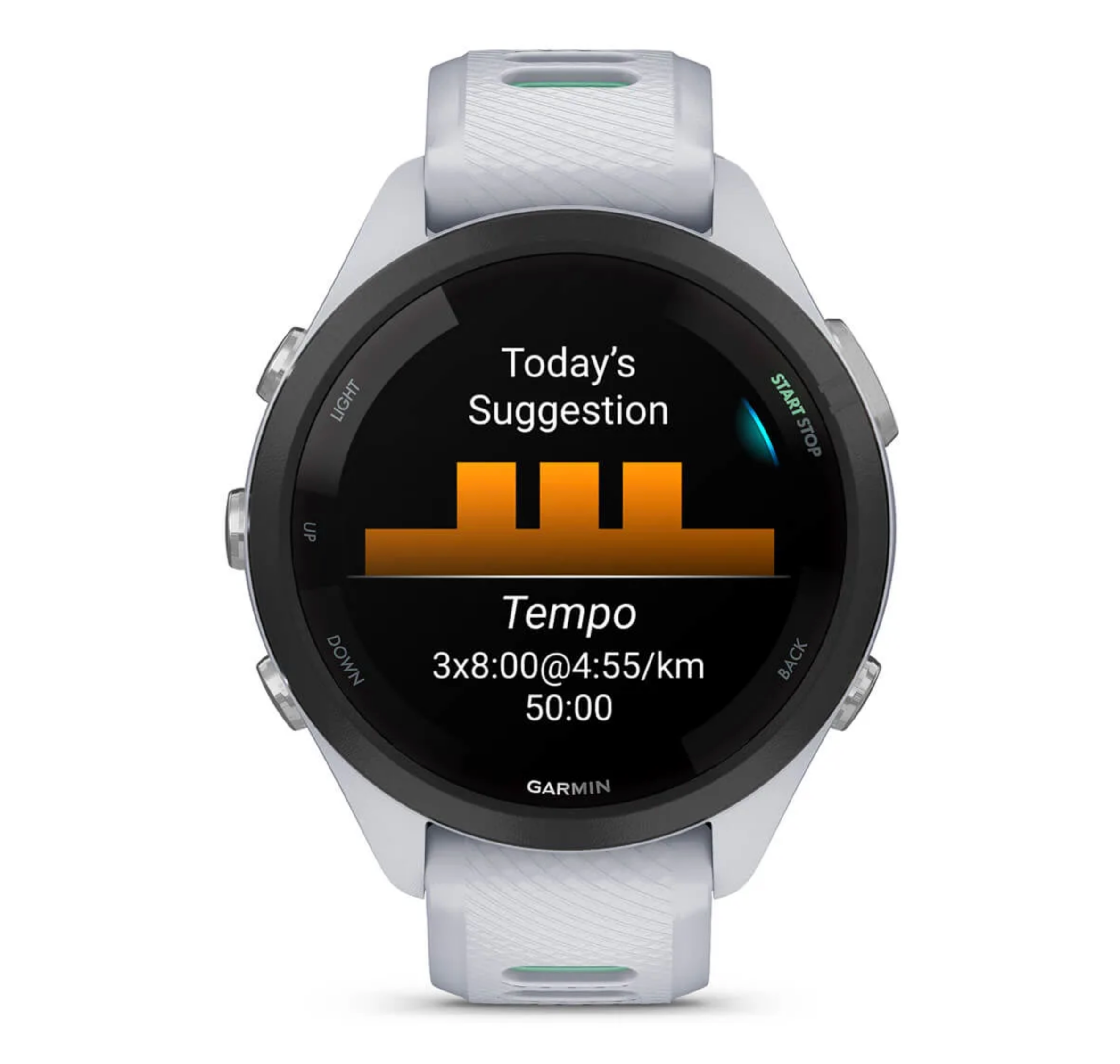 ¡Lleva tu entrenamiento a un nuevo nivel con el Garmin Forerunner® 265 Music! El reloj inteligente con GPS que combina tecnología avanzada, monitoreo de salud y tu música favorita, todo en un solo dispositivo. El Forerunner® 265 Music está diseñado para atletas que buscan precisión y rendimiento sin renunciar a la comodidad. Con su monitorización avanzada de frecuencia cardíaca, GPS de alta precisión y métricas detalladas de entrenamiento, tendrás todo lo que necesitas para seguir tu progreso, mejorar tu rendimiento y alcanzar nuevas metas. Además, su capacidad para almacenar hasta 500 canciones te permitirá entrenar al ritmo de tu música preferida sin depender de tu teléfono.  Imagina correr, nadar o andar en bicicleta con la tranquilidad de tener el seguimiento más preciso y motivarte con tu playlist favorita.  El Forerunner® 265 Music ofrece hasta 13 días de duración de batería en modo smartwatch y 20 horas en modo GPS, asegurando que siempre estés listo para cada desafío.  Su pantalla AMOLED, resistente y de fácil lectura, y su diseño ligero lo hacen ideal para llevarlo a cualquier lugar, ya sea en tus entrenamientos o en tu día a día. ¡Es el momento de superar tus límites! Compra ahora el Garmin Forerunner® 265 Music y disfruta de la mejor tecnología deportiva junto con tu música en cada paso. ¡Haz clic aquí y consigue el tuyo hoy mismo!