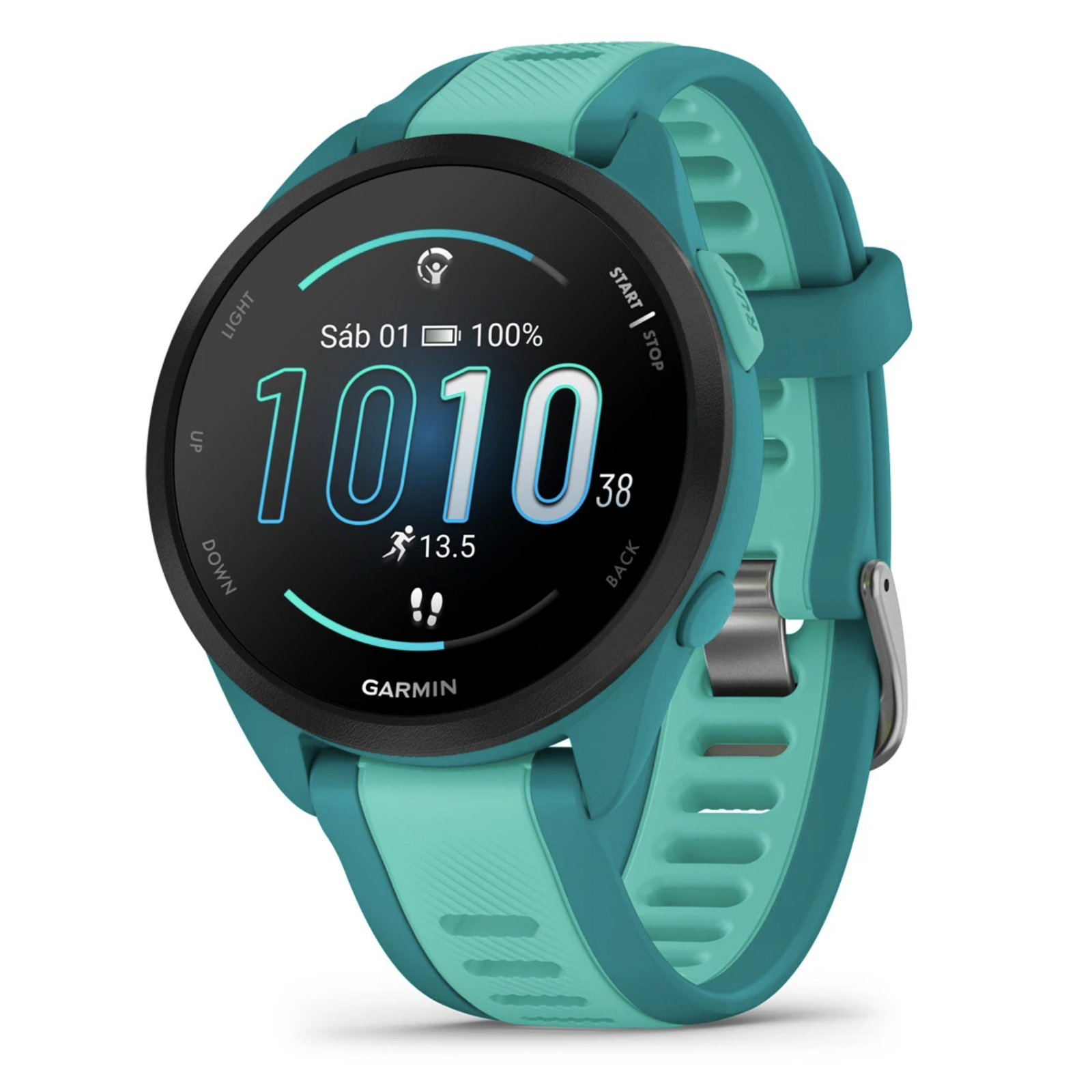 Controla tu rendimiento y lleva tu entrenamiento al siguiente nivel con el Garmin Forerunner® 165 Music, el reloj inteligente con GPS que te acompaña en cada paso de tu recorrido.