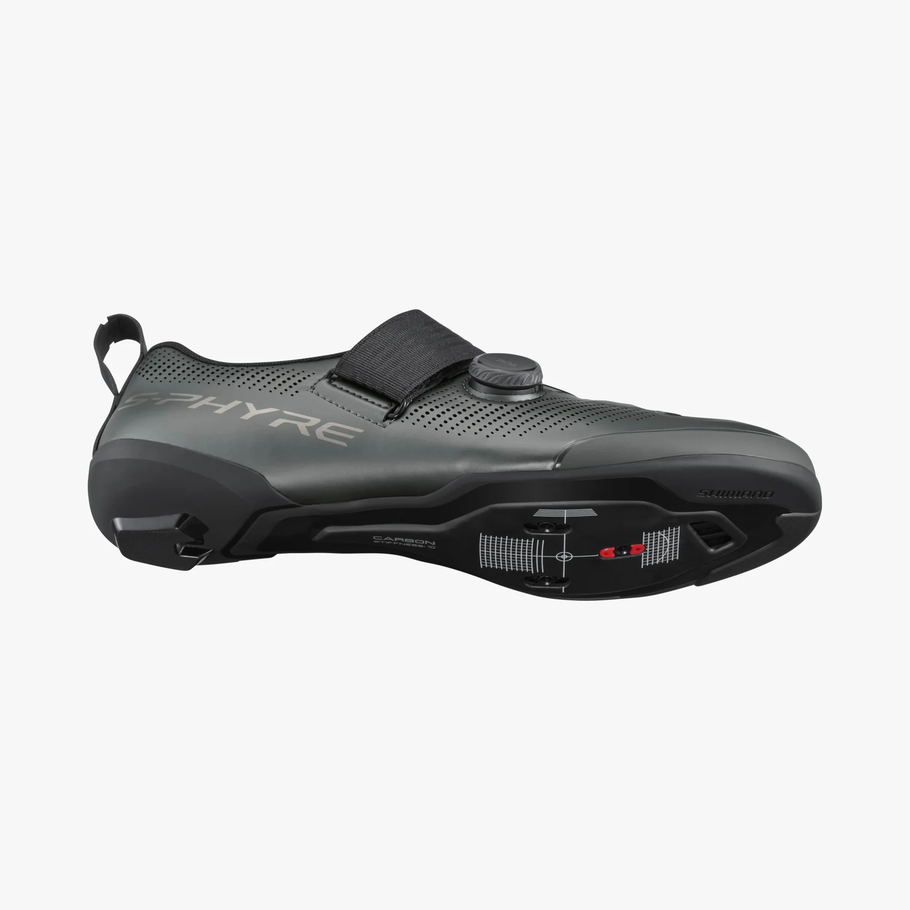Las zapatillas S-PHYRE TR903 de Shimano establecen un nuevo estándar en comodidad, transferencia de potencia, eficiencia y velocidad de transición. Diseñadas para carreras de triatlón de distancia sprint y olímpica, las TR903 cuentan con una correa de cierre única y ancha que minimiza el tiempo en T1, un factor crucial para el triatlón de corta distancia, donde la velocidad de transición es clave. Aunque están diseñadas para carreras de corta distancia, las TR903 son la mejor opción para cualquier triatleta y para cualquier triatlón de distancia donde se busca la velocidad en las zonas de transición.